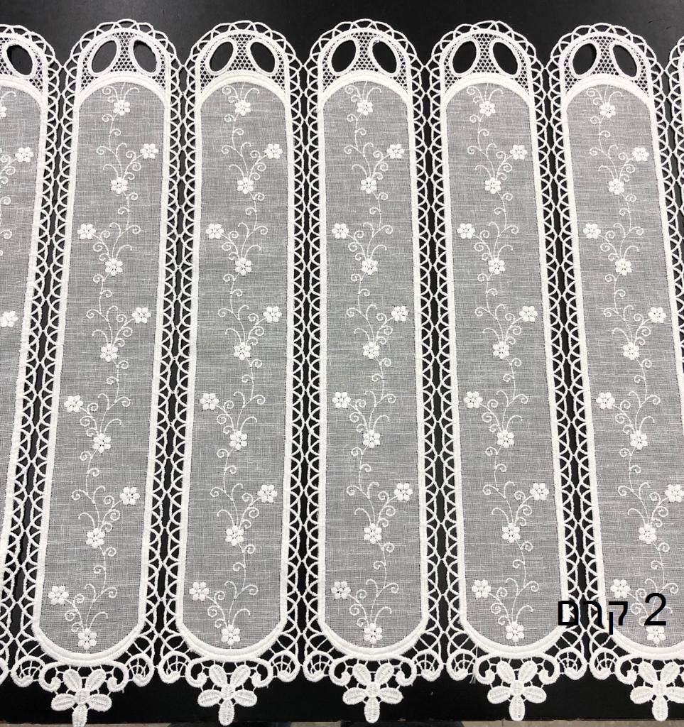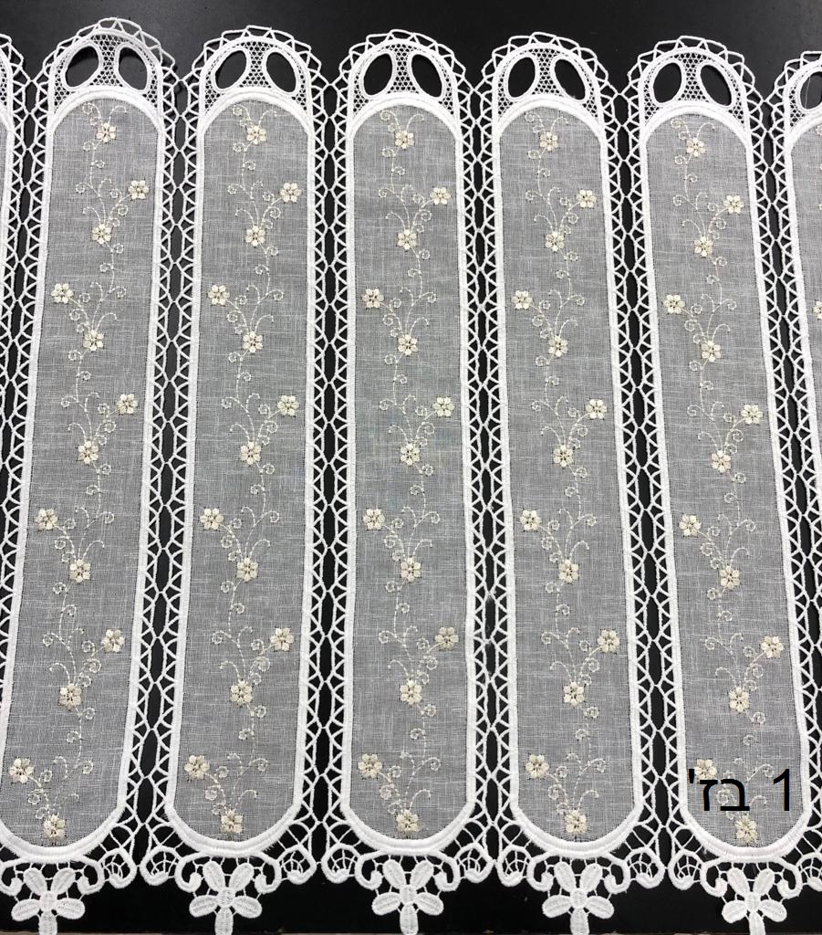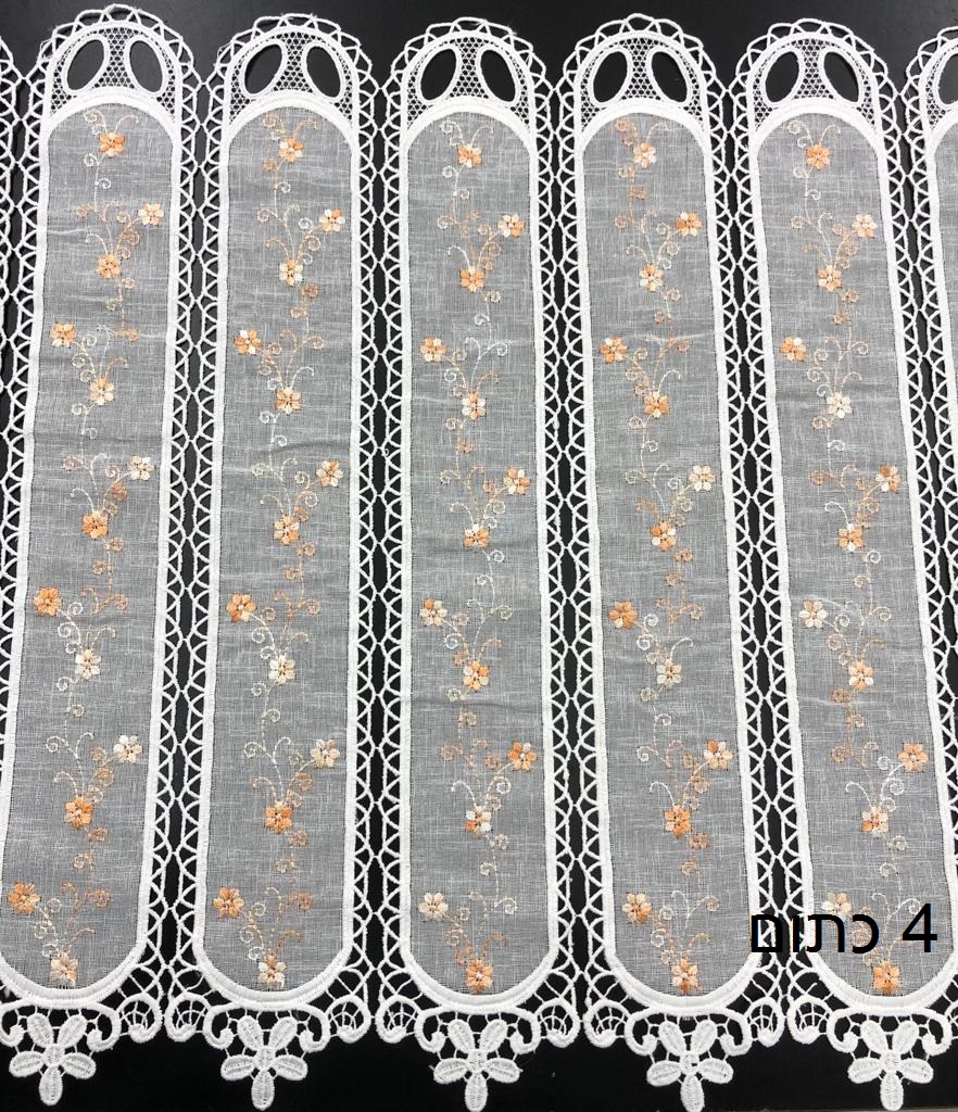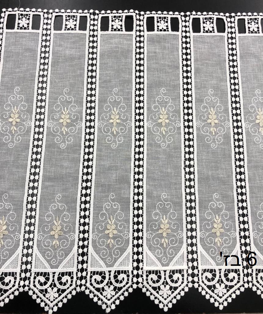 תיאור: עליונית כותרת וילון השחלה מרקמת תחרה וינטג' עם גימור מקרמה בשילוב גוונים המשווים לוילון אווירה רגועה.