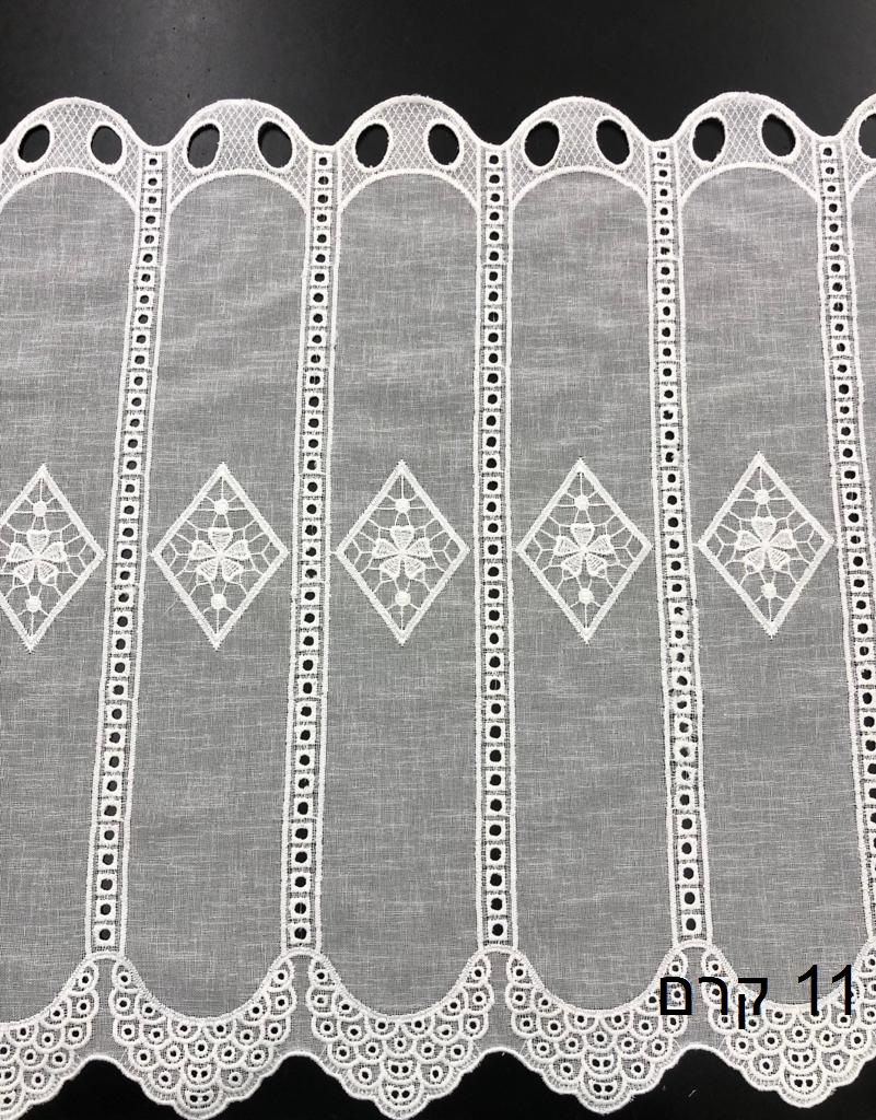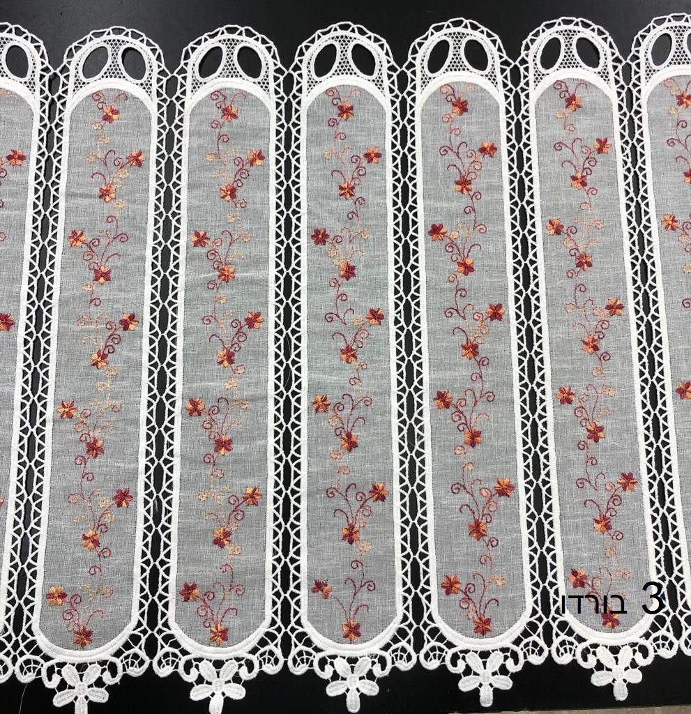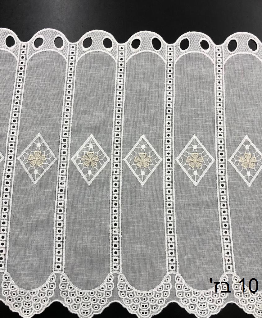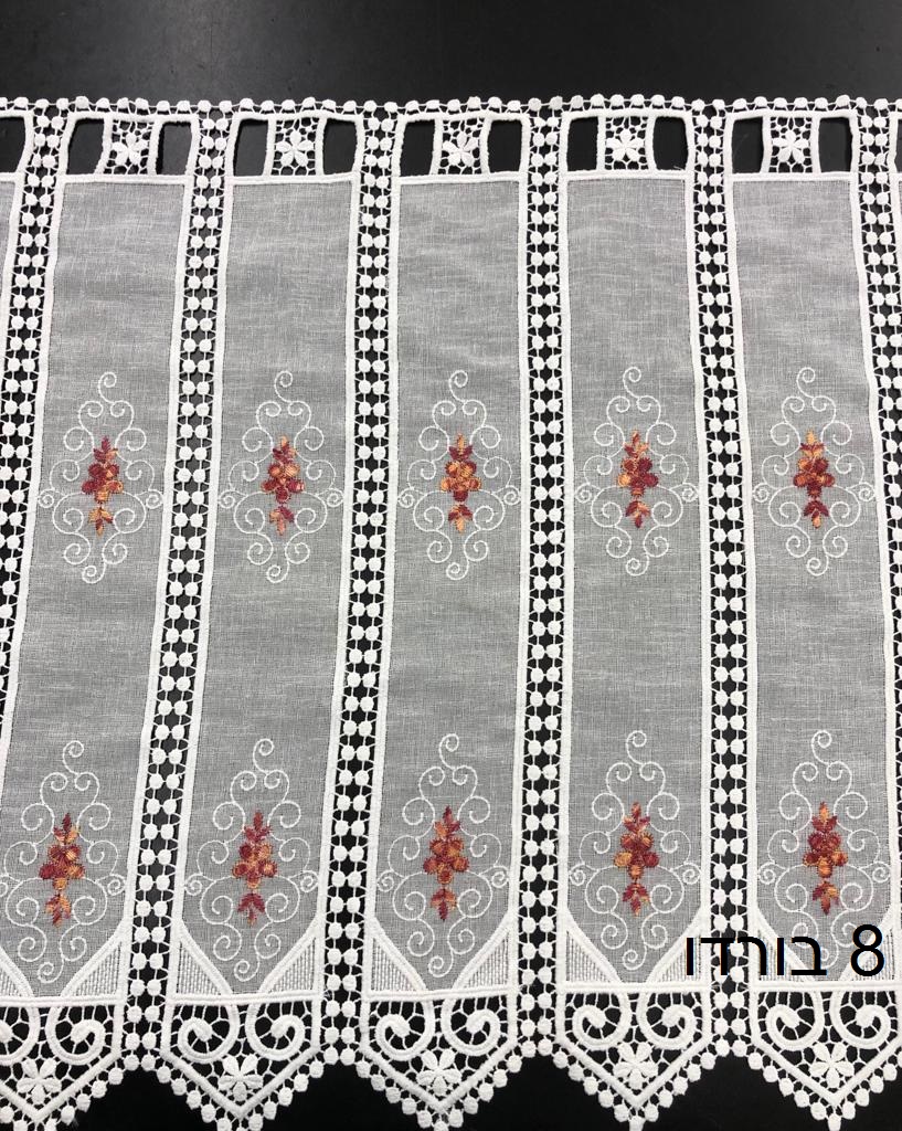 תיאור: עליונית כותרת וילון השחלה מרקמת תחרה וינטג' עם גימור מקרמה בשילוב גוונים המשווים לוילון אווירה רגועה.