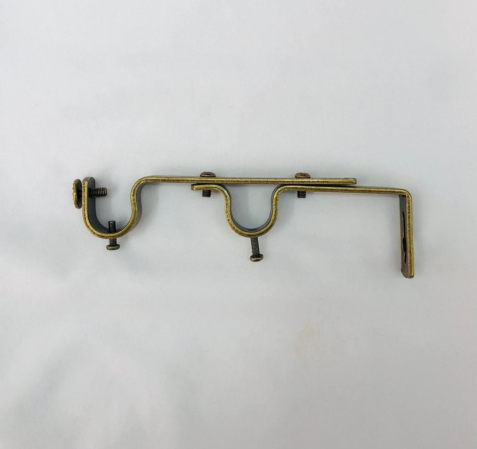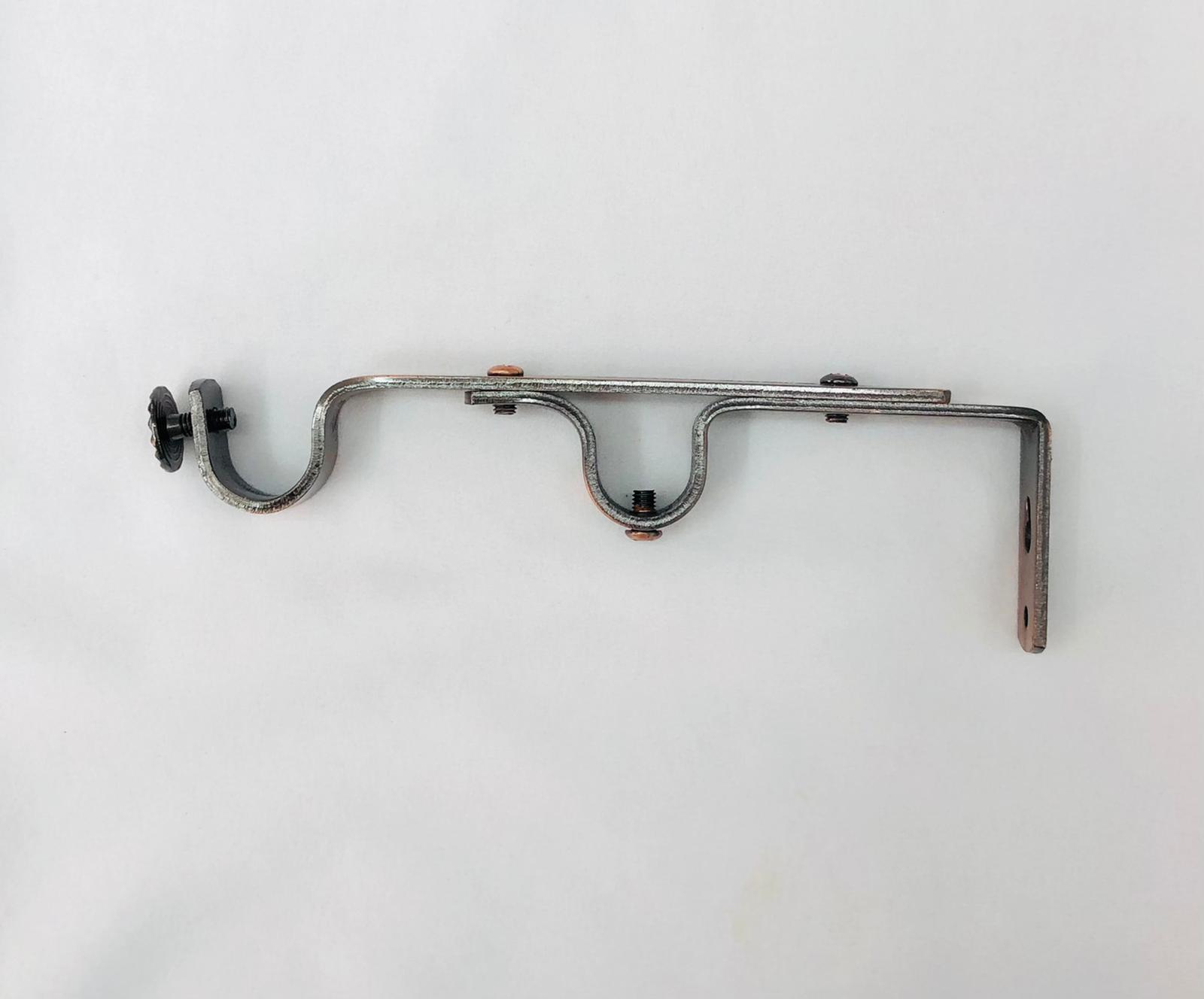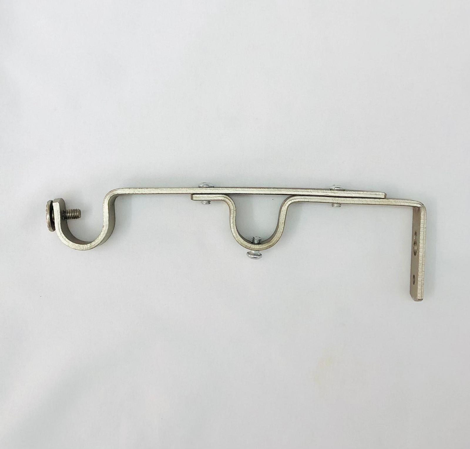 תיאור: רגל קיר כפולה טלסקופית לתליית 2 מוטות אלומיניום מהקיר (התרחקות עד 20 ס"מ). קיים בצבעים: ניקל, ברונזה, קופר. מתאים למוטות 19 מ"מ.