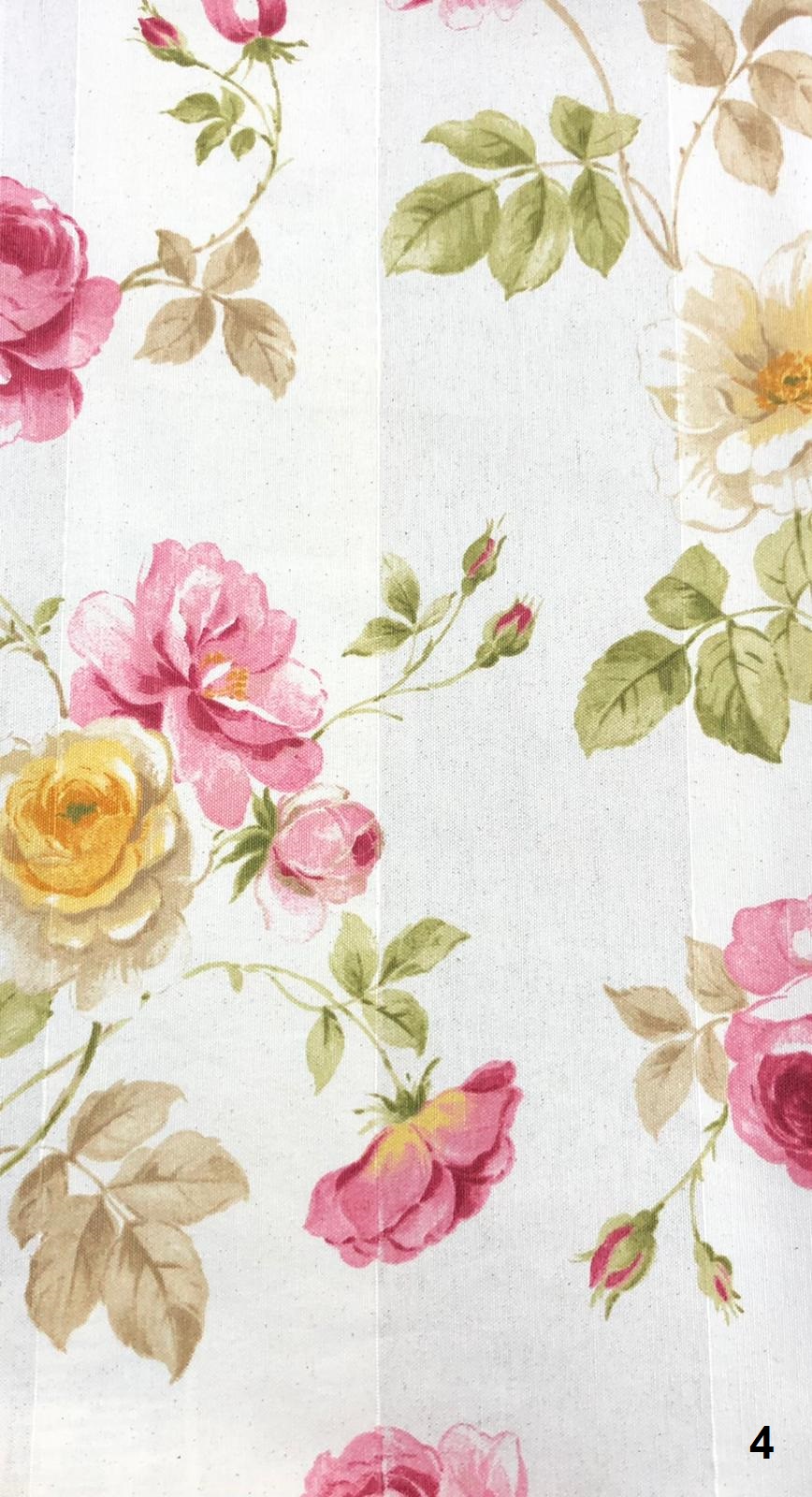 תיאור: בדים בדוגמאת פרחים מודפסים מאנגליה בדפוס דיגיטלי על רקע פשתני. רוחבם של הבדים מאפשר את תפירת כל סוגי הריפודים, וילונות וכריות קישוט