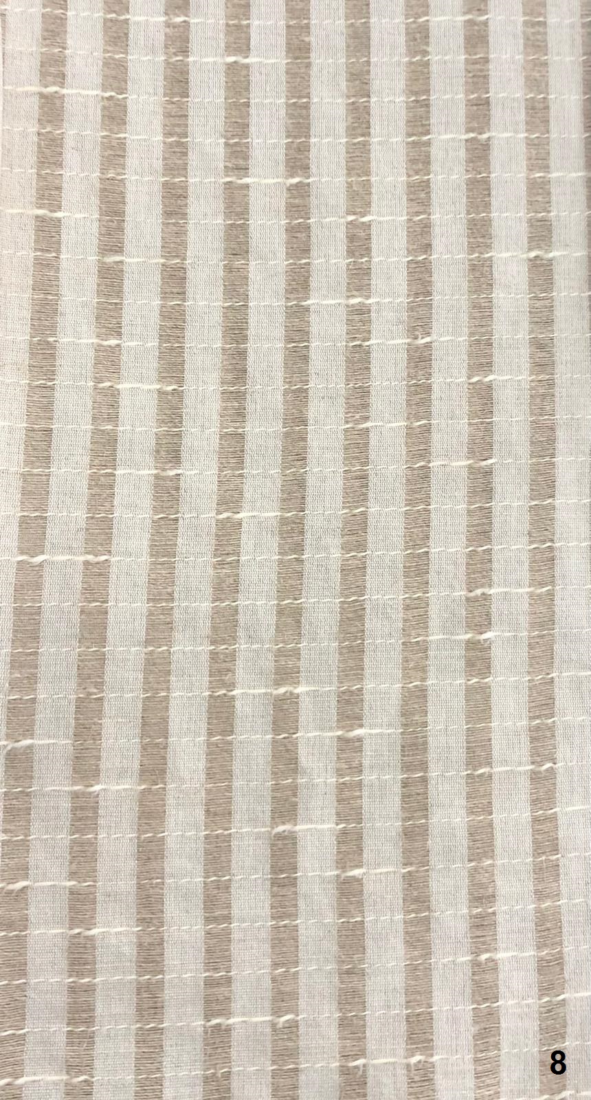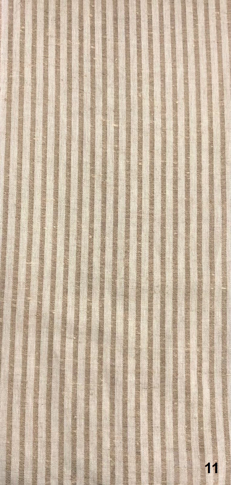 תיאור: קולקציית בדי פשתן אנגליים מלאים במבחר דוגמאות פסים עבים, צרים או חלקים. ניתן לקבל כבד גזור או וילון תפור לפי מידה.