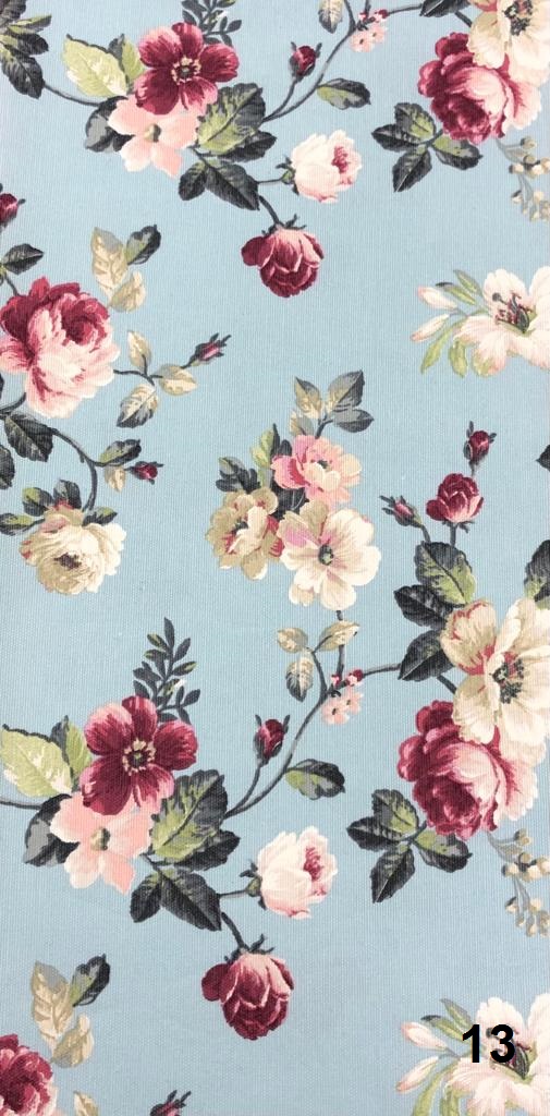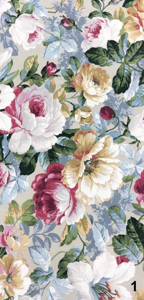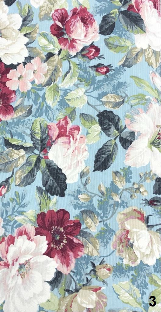 תיאור: בדים בדוגמאת פרחים מודפסים מאנגליה בדפוס דיגיטלי. רוחבם של הבדים מאפשר את תפירת כל סוגי הריפודים, וילונות וכריות קישוט