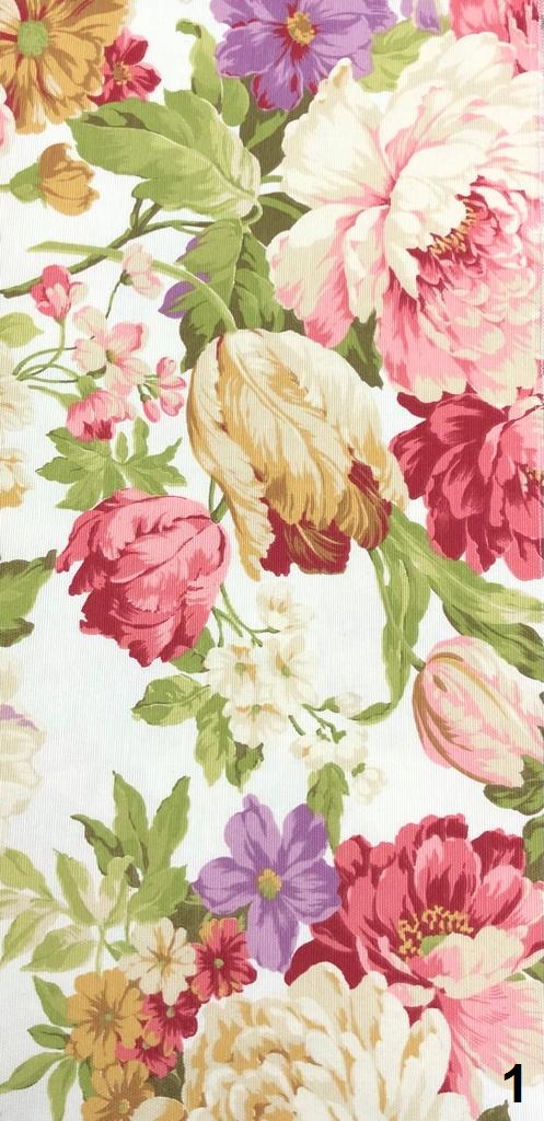 תיאור: בדים בדוגמאת פרחים מודפסים מאנגליה בדפוס דיגיטלי. רוחבם של הבדים מאפשר את תפירת כל סוגי הריפודים, וילונות וכריות קישוט
