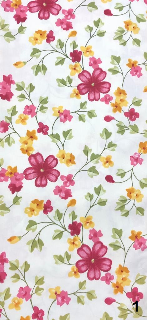 תיאור: בדים פרחוניים (פרח גדול וקטן) מודפסים מאנגליה בדפוס דיגיטלי. רוחבם של הבדים מאפשר את תפירת כל סוגי הריפודים, וילונות וכריות קישוט