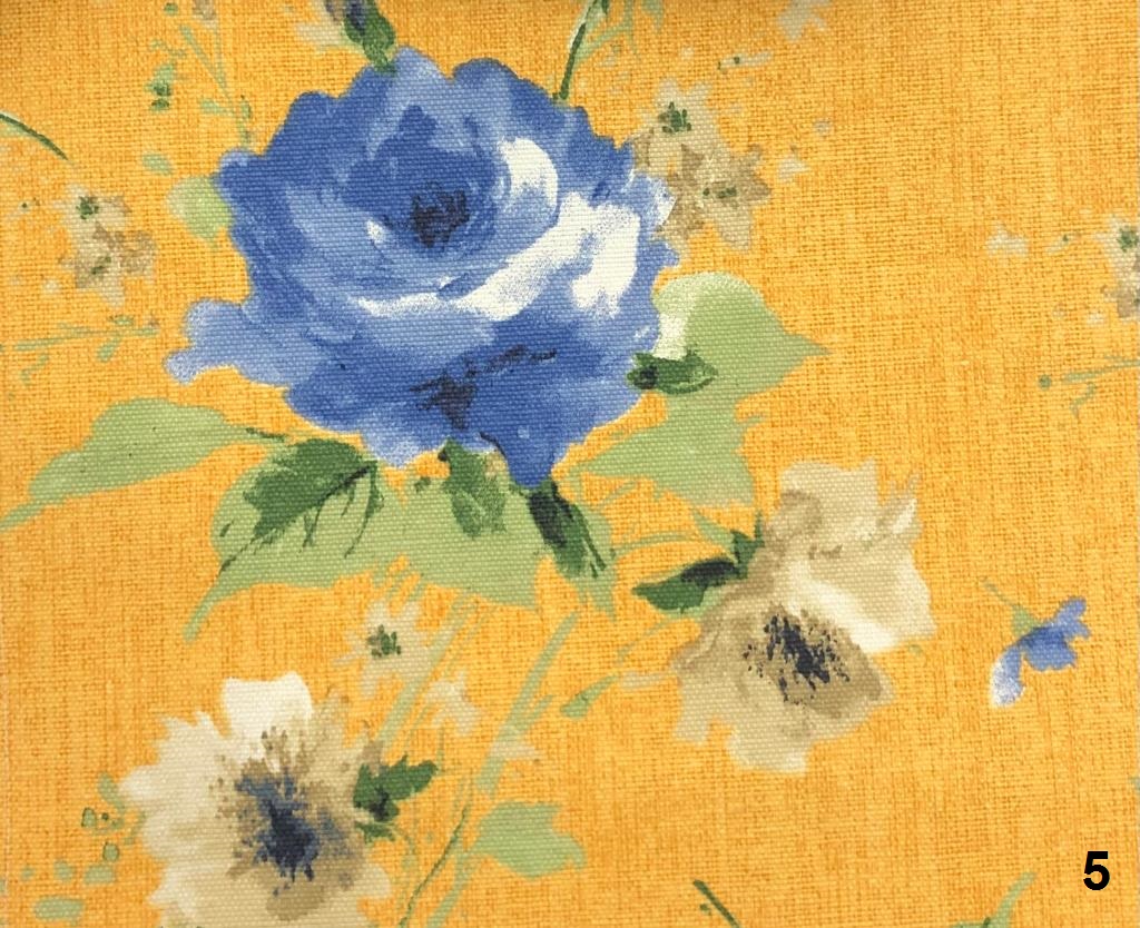 תיאור: בדים פרחוניים (פרח גדול וקטן) מודפסים מאנגליה בדפוס דיגיטלי. רוחבם של הבדים מאפשר את תפירת כל סוגי הריפודים, וילונות וכריות קישוט