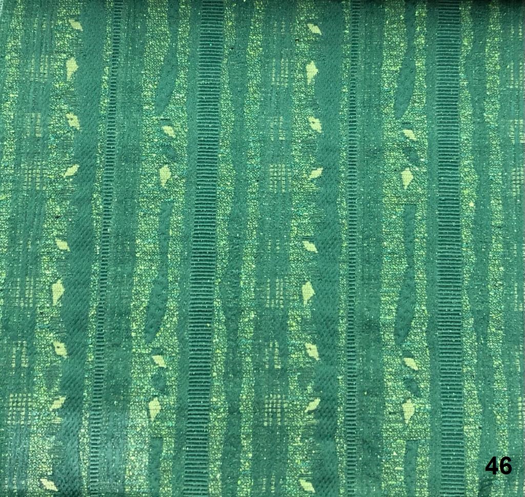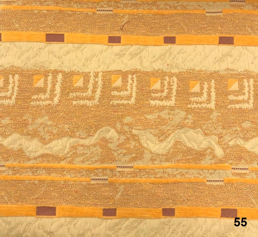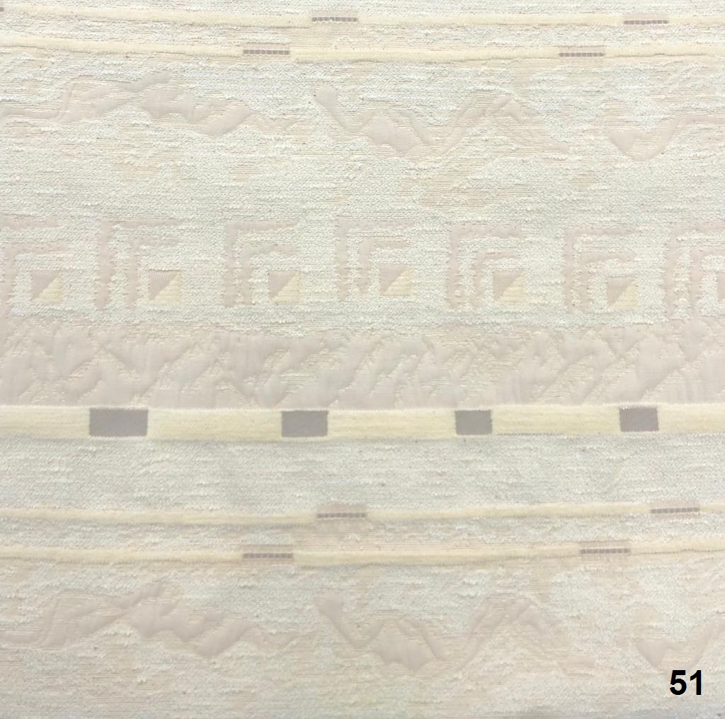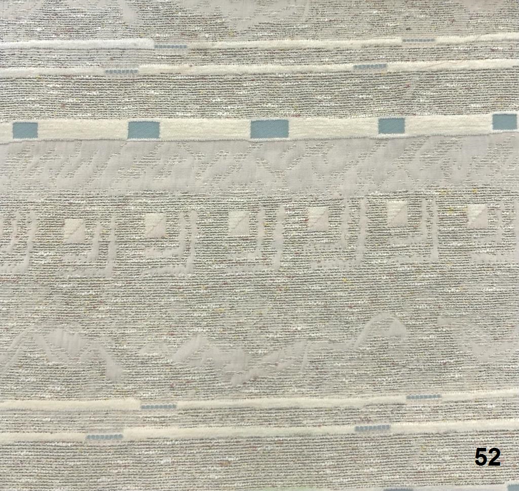 תיאור: אריגי ג'קארד בעלי דוגמאות אתניות/ גיאומטריות בשילוב חוטים מחליפי גוונים היוצרים עניין צבעוני וצורני